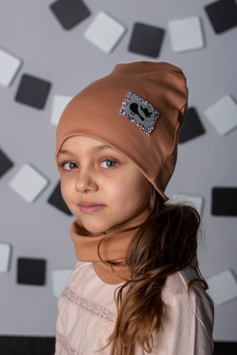 Комплект: шапка + шарф-снуд для девочек в насыщенной современной расцветке
